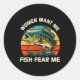 Sticker Rond Women Fear Me Fish Want Me Funny Fishing