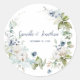 Sticker Rond Wreath Florale d'hiver en bleu Dusty et vert Sage