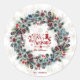 Wreath hiver 'Tis the Season Monogram. Un design unique avec une couronne d'hiver aquarelle (baies saintes, feuillage, cônes et branches de pin) et une magnifique parties scintillant faux rouge "c'est la saison" typographie avec bougie et ornements, le tout sur un arrière - plan de flocs de neige défraîchi.
