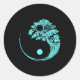 Sticker Rond Yin Yang Turquoise Blue Bonsai Tree Japonais