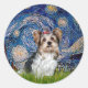 Sticker Rond Yorkshire Terrier (Biewer) - Nuit étoilée