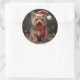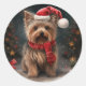 Sticker Rond Yorkshire Terrier Dog dans la neige Noël