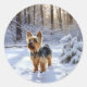 Sticker Rond Yorkshire Terrier Laisser Neige Noël