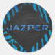 Sticker Rond Zèbre noir et bleu avec Monogramme
