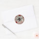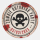 Vintage look round sticker for a zombie themed party, with weathered sign.