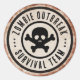 Vintage look round sticker for a zombie themed party, with weathered sign.