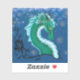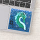 Portrait de profil de dragon bleu, vert et turquoise avec neige tombant tout autour. Rose tribal noir.