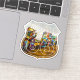 Cet autocollant célèbre une véritable icône de la route mère avec un design frappant. Le graphique présente la forme classique du panneau routier Route 66 avec "Route 66" en évidence. L'arrière - plan est une représentation artistique du célèbre Ranch Cadillac, qui présente les voitures cool, semi-enfouies recouvertes de couches de peinture au spray. Cet autocollant est un hommage parfait à l'art vibrant et l'esprit excentrique qui définit un voyage le long de l'autoroute historique, idéal pour votre ordinateur portable, bouteille d'eau, ou carnet de voyage.
