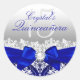 Sticker Royal Blue Damask & Pearl Bow Quinceanera
