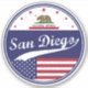 San Diego, Californie. Design San Diego avec drapeau des Etats-Unis et drapeau de la Californie, Cali Vibes, California Dream. Autocollant de voiture San Diego, autocollant de bagages San Diego, autocollant de voyage San Diego, autocollant de pare-chocs San Diego, autocollant San Diego forme arrondie.
