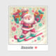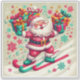 A cheerful Santa Claus expertly skis down a snowy slope, balancing festive gifts in each hand.