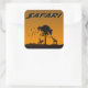 autocollant carré pour assortir notre "Serengeti Safari" avec une image d'antilope africaine, d'oiseaux, d'une girafe et d'un arbre silhouette par le coucher du soleil du Serengeti et "safari" épelé en caractères noirs gras. Voir invitation correspondante et étiquette de faveur. Voir l'ensemble de la collection Safari Sticker dans les INVITATIONS | Section Stickers & Étiquettes.