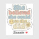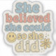 Add a dose of confidence and color to your day with this retro-inspired "She believed she could so she did" sticker. Designed with bold bubble letters and cheerful details like smiley faces and flowers, it’s perfect for laptops, water bottles, journals, or gifts that inspire! A cute way to spread girl power and good vibes.