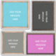 Il s'agit d'un ensemble de quatre autocollants en forme de carton ou de marquee signes en noir classique, bleu turquoise clair, rose magenta et gris fusain. Ajoutez le même message à chaque signe ou un dicton différent à chacun pour créer vos propres autocollants personnalisés.