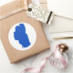 Forme du lac Tahoe en bleu, sur un autocollant rond