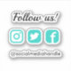 Autocollant de contour de média social promotionnel pour votre entreprise avec Suivez-nous! dans un script et votre poignée de médias sociaux dans une police moderne et des icônes de médias sociaux turquoise.