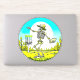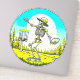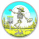 Squelette amusant en casquette jouant au golf sur disque à l'extérieur dans les bois.