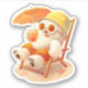 Smile Dog est en mode vacances complet, se relaxant en short orange, sirotant un verre sur la plage et prenant le soleil. Parfait pour les ambiances estivales et les espaces de détente.
