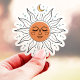 Ce charmant sticker en vinyle présente un soleil paisible aux yeux fermés, une lune de croissant et des étoiles scintillantes, créant une atmosphère sereine et céleste. Parfait pour ajouter une touche de fantaisie aux ordinateurs portables, bouteilles d'eau, journaux, etc.