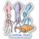 Trois caricatures de calmar mignon et une coquille de mer de triton. Texte personnalisé.