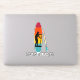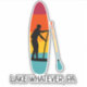 Créez votre propre autocollant souvenir personnalisé lorsque vous ajoutez le nom de votre point d'embarquement préféré à cet autocollant de style contour ou découpé. Cet autocollant présente une illustration d'un SUP ou d'une planche à pédales debout et d'une pagaie dépeinte en couleurs vibrantes du coucher de soleil avec une illustration en silhouette en noir de quelqu'un d'embarquement de pagaie. Votre texte apparaît ci-dessous en lettres noires.