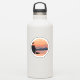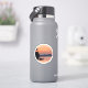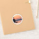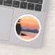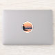 Cet autocollant représente un beau coucher de soleil avec une montagne surplombant un lac.
