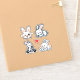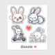 Extraordinaire feuille autocollante avec un super mignon lapin dans quatre situations différentes, clignotant, dormir, monter un scooter et sentir une fleur. Restez autour et répandez la joie.