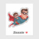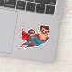Cet autocollant représente une scène dynamique d'un père de super-héros qui s'envole dans le ciel avec son fils de super-héros tout aussi capté, symbolisant les aventures partagées et le lien inséparable entre père et fils.