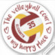 Cet autocollant en vinyle de volleyball présente l'image réaliste d'un maroon, d'un ballon d'or et d'un volleyball blanc encerclé par la phrase "Le terrain de volleyball est mon endroit heureux" et deux contours de coeur en style décontracté, écrit à la main, en lettrage de maroon - personnalisez le nom de l'athlète et numéro de maillot - par katz_d_zynes