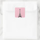 Une élégante tour Eiffel aux lumières scintillantes orne cet autocollant rose.