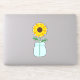 Un autocollant d'un tournesol debout joyeusement dans un bocal de maçon.