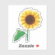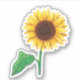Sticker avec l'illustration d'un tournesol jaune avec une feuille verte. Loose, style dessiné à la main.
