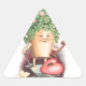 Antique postcard illustration from the 1900's, with a smiling face, rosy cheeks, humanized potted plant of four leaf clover shamrocks, surrounded by a red tampy heart and key, and a pretty golden yellow butterfly. Much good luck !