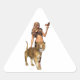 Cette conception présente une image imaginaire d'une belle reine guerrière ancienne qui se promène avec ses compagnons, une lionne d'or et un petit oiseau rouge.