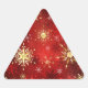 Sticker Triangulaire Noël Golden Snowflakes sur Arrière - plan rouge