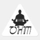 Une silhouette d'un homme en position lotus, faisant des boucles de fil comme celles utilisées dans les atomiseurs réparables. Sous lui se trouve le mot Ohm, rappelant les unités de résistance électrique (toujours importantes pour les vapeurs) et la syllabe sacrée de l'hindouisme et du bouddhisme.