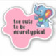 Un autocollant avec un éléphant mignon et coloré disant "trop mignon pour être neurotypique"