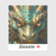 A sticker with a cool close up illustration of a turquoise and metallic gold dragon face with realistic eyes.