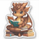 Un dragon lisant un livre. Les enfants adorent les créatures et les bestioles !!! La lecture est une obligation pour les enfants !!! Récompensez-les avec un autocollant !!! Cette image contient du contenu génératif.