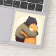 L'enfant embrasse son chatte-gingembre mignon Sticker. Illustration d'amitié pour l'enfant et d'humour animal.