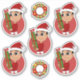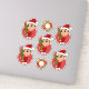 Ensemble de sept autocollants en vinyle coupé avec l'illustration d'un joli garçon hispanique/latin ou asiatique en bas âge, il porte un casquette de Père Noël rouge et blanc et tient un cadeau de Noël
