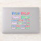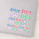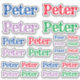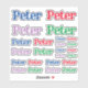 Des autocollants colorés de différentes tailles avec le nom chrétien Peter.