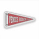 This classic, retro-style pennant celebrates Venice Beach, California, a world-famous coastal neighborhood in Los Angeles. Known for its eclectic boardwalk, street performers, Muscle Beach gymnasium, and vibrant skateboarding culture, Venice is the heart of Southern California's bohemian and artistic spirit. The design perfectly captures the vintage, sunny, and laid-back energy of this West Coast destination.