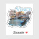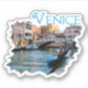 Image souvenir d'un pont, de bateaux et de bâtiments colorés entourant un canal à Venise, Italie. Cet autocollant est entièrement personnalisable.