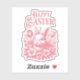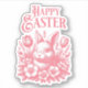 Style vintage, Lapin Rose Doux avec Fleurs. Sticker mignon pour les fêtes de Pâques, la chasse aux oeufs ou les cures.