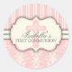 Un joli design de damas et de rayures dans un teint rose et crème doux et féminin. Orné d'une croix de coordination, il convient à toute célébration sacramentelle, et chaque zone de texte est personnalisable. Fait un joli sceau d'enveloppe ou un autocollant de faveur pour la première communion, le baptême ou la confirmation de votre fille.