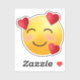 Le visage souriant aux coeurs représente un visage jaune aux yeux souriants, aux joues roses et à plusieurs coeurs flottant autour de la tête, comme dans un nuage d'amour. Il transmet généralement des sentiments chauds et flous, surtout en se sentant aimé ou en étant amoureux de quelqu'un ou quelque chose.