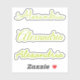 Décorez votre ordinateur portable, votre bouteille d'eau, votre coque ou d'autres articles avec trois autocollants personnalisés portant votre nom dans 3 polices manuscrites en vert citron. Ajoutez votre nom dans la barre latérale. Sélectionnez "blanc mat" dans la barre latérale pour rendre l'arrière - plan transparent autour de votre nom blanc.