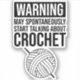 Warning - May Spontaneously Start Talking About Crochet. This funny crocheting lover accessory is a great idea for the crocheter in your life. Perfect for women, men, boys, girls, teens & kids who love to crochet & craft, and love yarn! If crocheting is your hobby, you're a yarn lover and you love crafting with a crochet hook and balls of yarn, then this crocheter design is for you! Includes a graphic of a crochet hook with a ball of yarn.