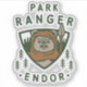 Star Wars : Humour classique | Découvrez cette adorable image de Wicket W. Warrick, le Ranger du parc à Endor, avec un badge en forme de bouclier avec Wicket tenant sa lance devant une forêt. | Pour un usage personnel non commercial uniquement.